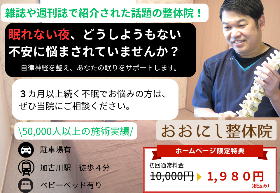 ツライ痛み・不調でお悩みでしたら、加古川市に整体院を持つ大西先生の施術を受けてみてください!