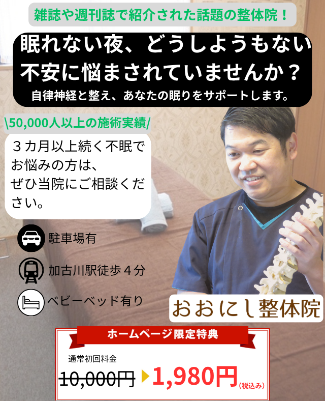 理由:自律神経の調整を整え、睡眠の質を高めるために、定期的な施術が必要です。