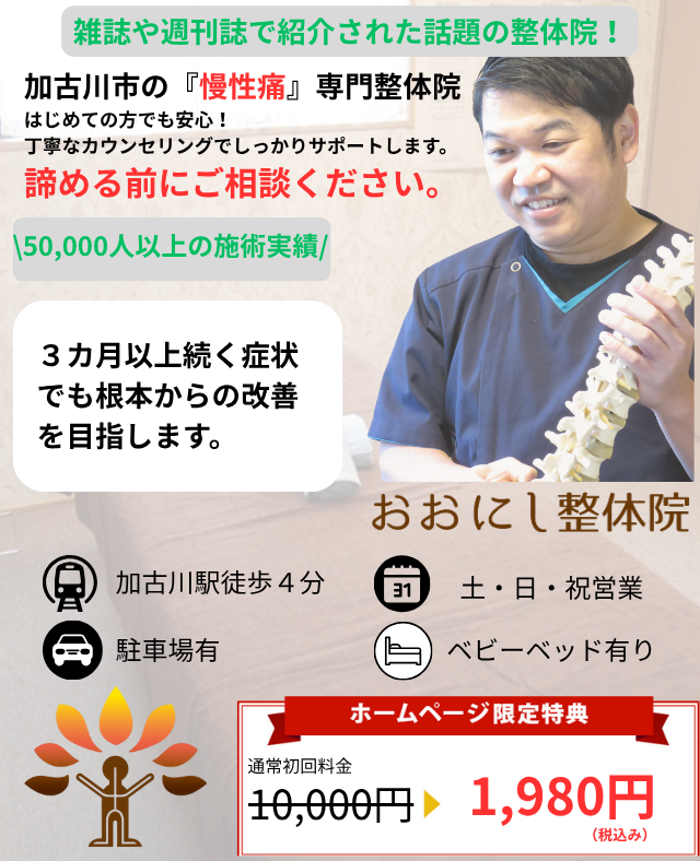 このたびは“おおにし整体院”のホームページをご覧いただきありがとうございます。