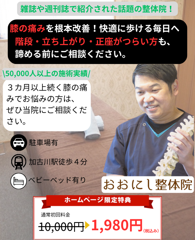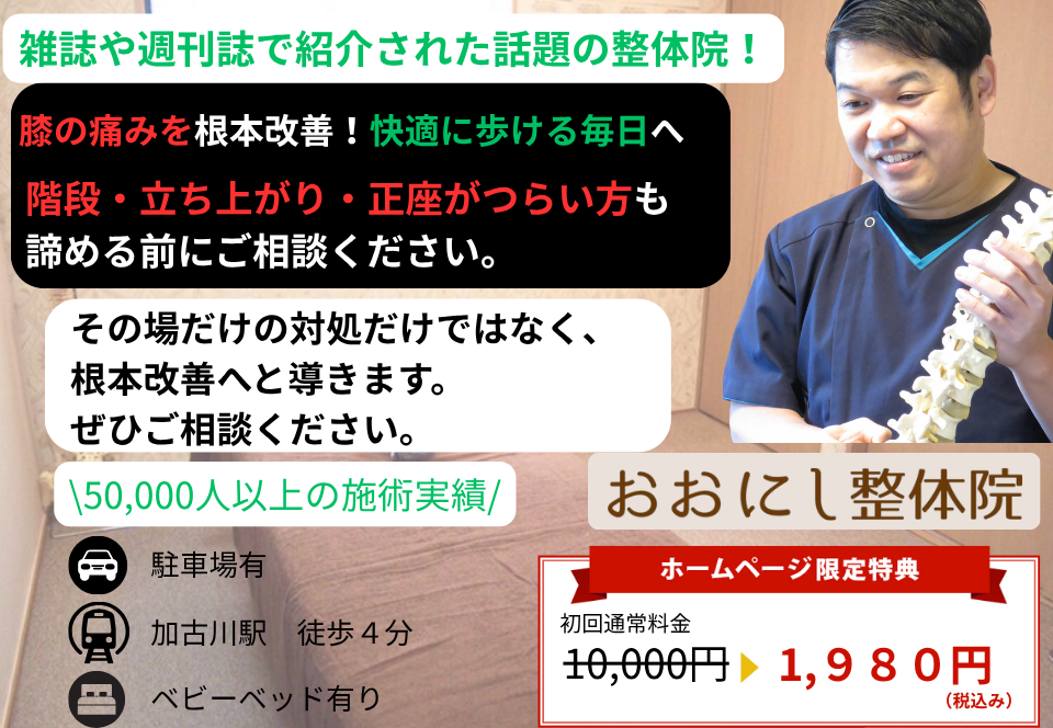 ツライ痛み・不調でお悩みでしたら、加古川市に整体院を持つ大西先生の施術を受けてみてください!